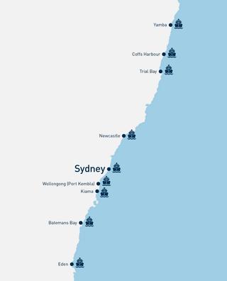 New South Wales is home to nine ports, with four major ports currently welcoming cruise ships (subject to size and weather conditions) including Sydney (Overseas Passenger Terminal and White Bay Cruise Terminal), Newcastle, Eden and Batemans Bay. The five minor ports include Yamba, Coffs Harbour, Trial Bay (South West Rocks), Wollongong (Port Kembla) and Kiama (not every minor port receives cruise ships).