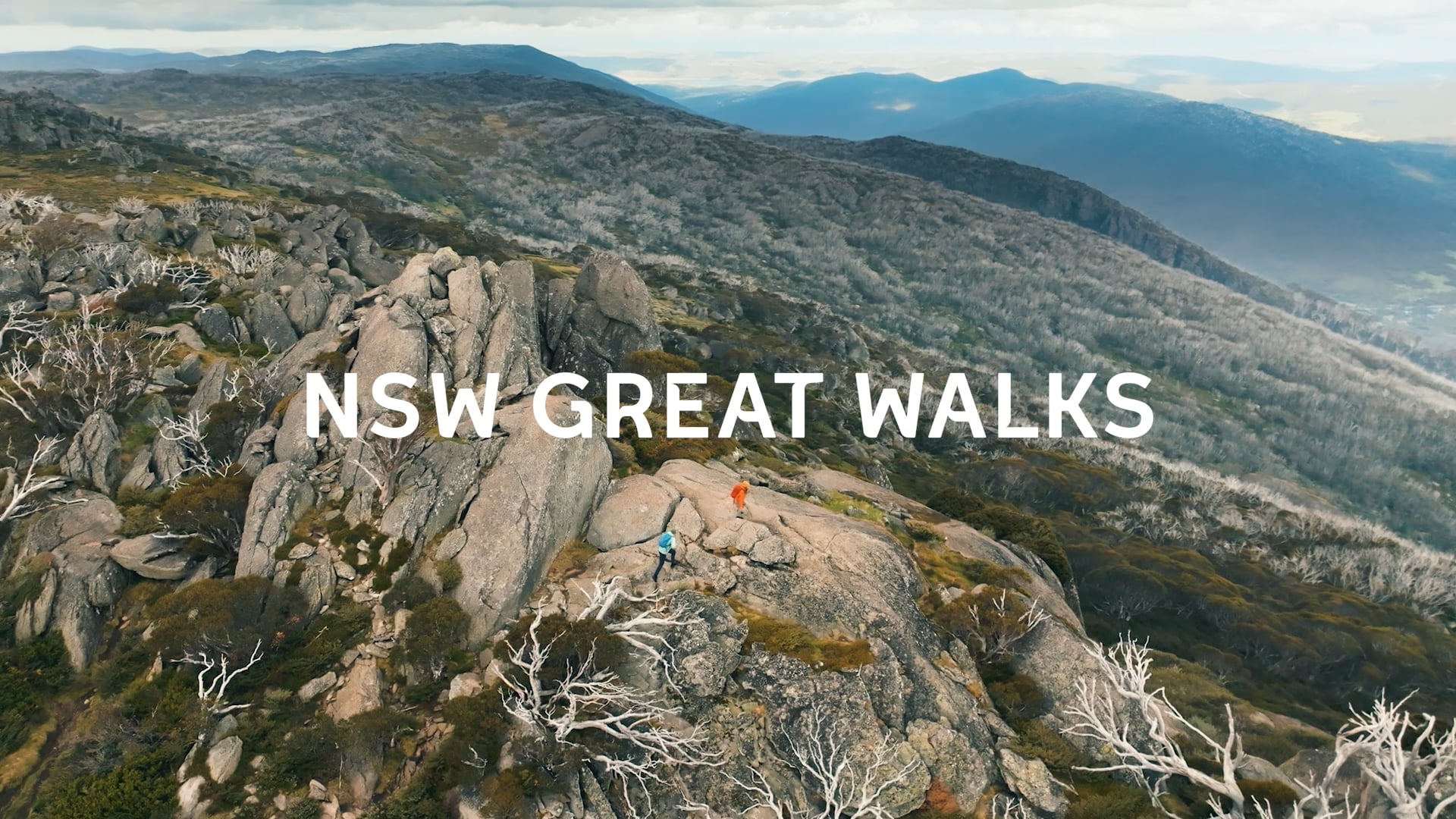 The campaign encourages visitors to explore multi-day walks including Snowies Alpine Walk (Snowy Mountains), Gidjuum Gulganyi Walk (Tweed/Byron Hinterland), Light to Light (Sapphire Coast), Murramarang South Coast Walk, Tomaree Coastal Walk (Port Stephens), Grand Cliff Top Walk (Blue Mountains) and Green Gully Track (Northern Tablelands).